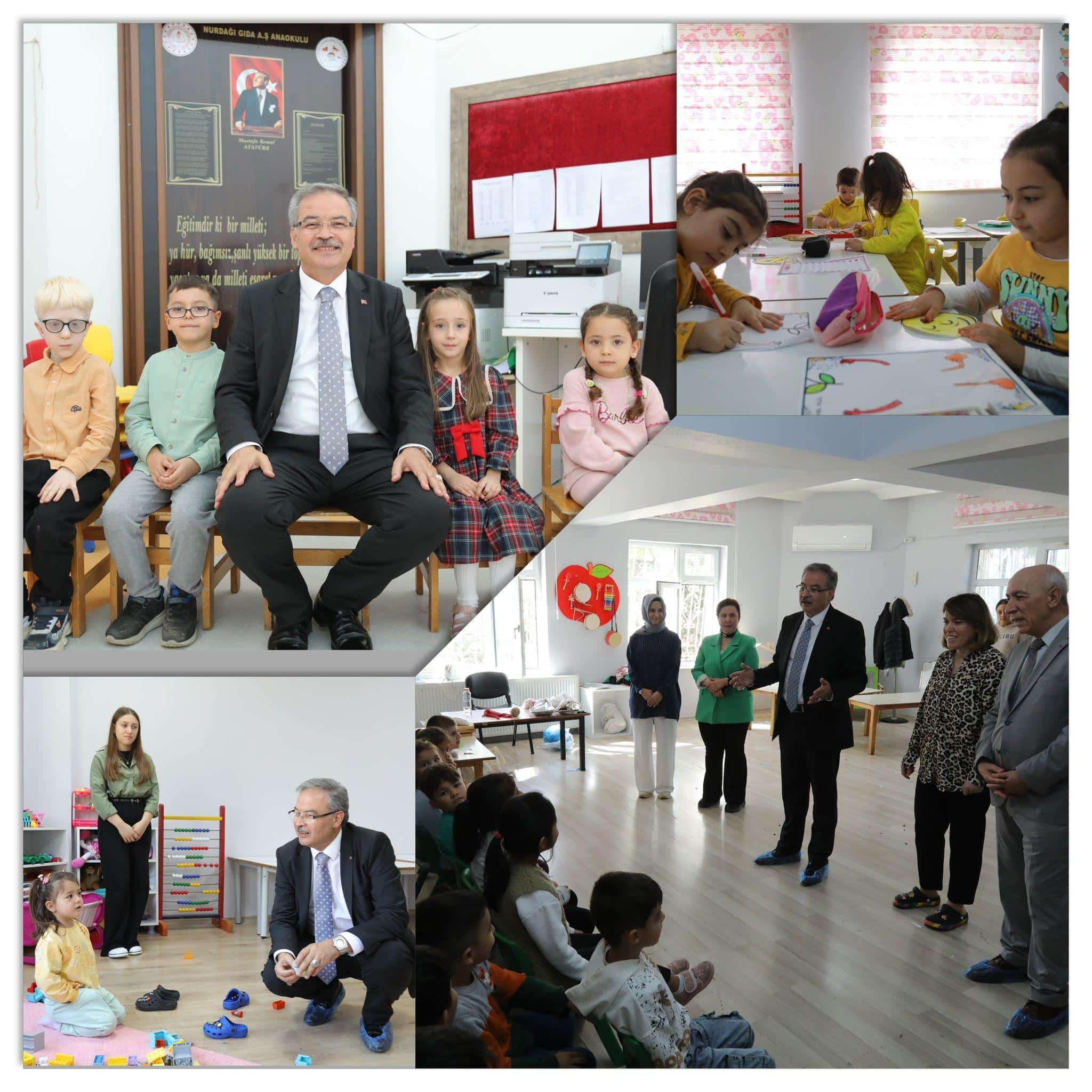 İl Millî Eğitim Müdürümüz Dr. Önder Arpacı, Nurdağı Gıda Anonim Şirketi Anaokulunu ziyaret etti, ana kuzusu öğrencilerin ders içi faaliyetlerine katıldı, öğretmen ve okul yöneticileriyle bir araya geldi.